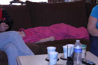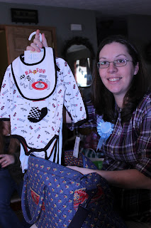 Mommy and cousin Katie had a baby Shower for Cousin Shauna and her soon to arrive (due date 3/25/12) baby boy Kolbie Uriah. Nana G was nice enough to let them have the party at her house. Shauna got lots of nice stuff or rather Kolbie did, Shauna just got the honor of opening all his gifts and will get the honor later of washing, drying, folding, and putting away all of his new clothes 🙂