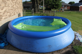 This is a swimming pool! Mommy and Daddy love to get in it and float on those rafts and its sure been helping us all to stay cool!