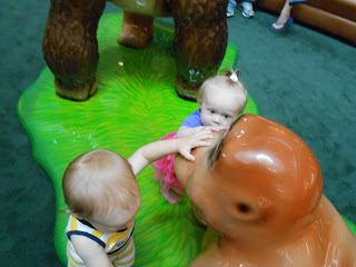 We went shopping Mommy and Aunt Becca and we got to play at the mall on these cool animals…