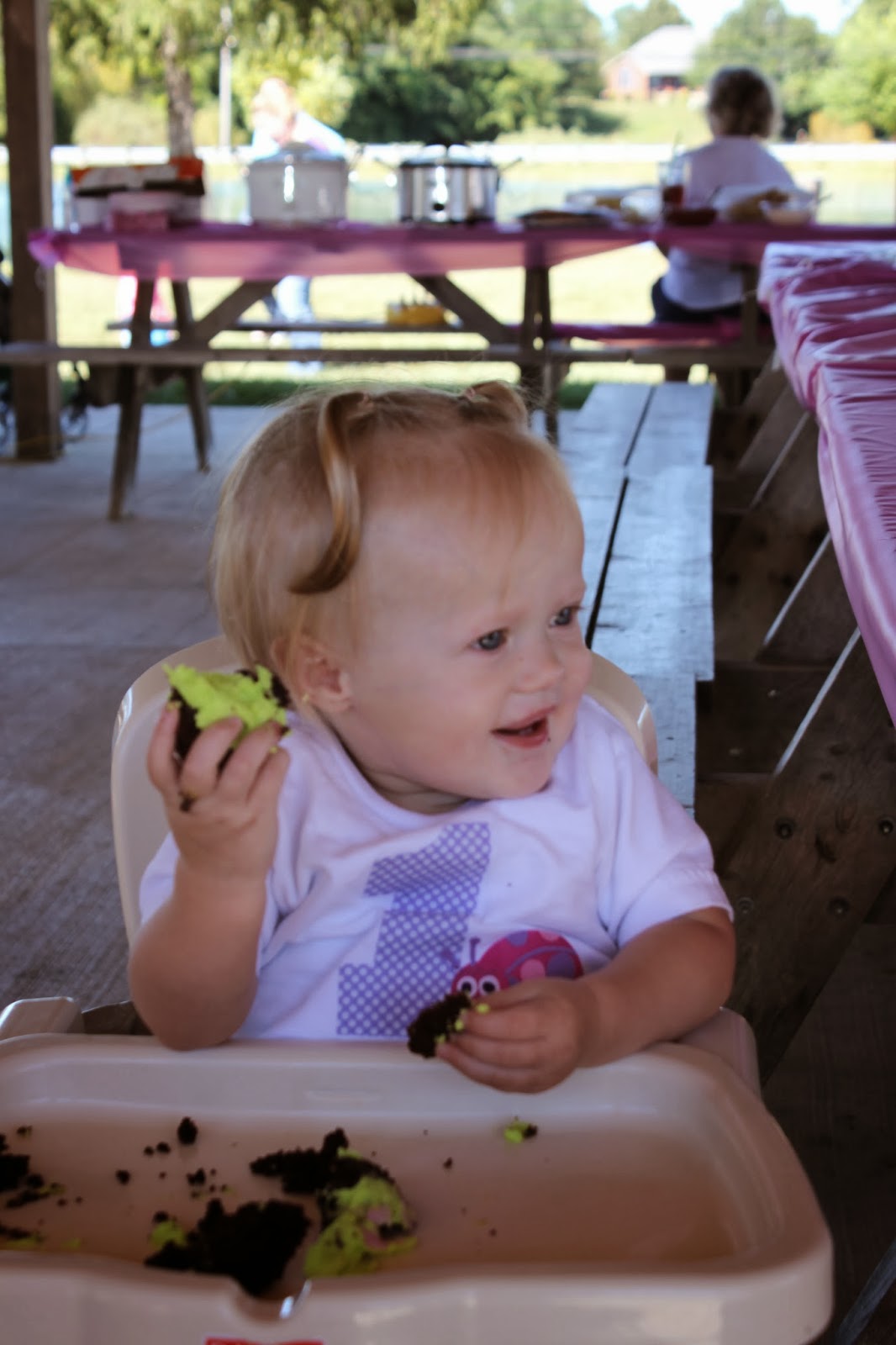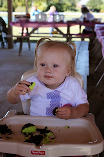 I\’ve had many thousands of pictures taken, I\’ve met A TON of people. Daddy says we are related to \”half the county\” and Mommy says \”that\’s probably true\” it sure seems like everywhere we go i\’m always meeting new people. I\’ve had a lot of \”firsts\” Holiday\’s, haircuts, colds, even my first tooth, steps, rolls, crawls, smiles, laughs and even my first words, but my very favorite \”First\” was my birthday party! It was so so much fun to get to go to the park and have all my friends over to play. Did you know that when its your birthday you can have cake?? I didn\’t even know what cake was until my birthday party but I liked it! I had some chocolate cake. Mommy and Daddy worked very hard making all the food for my party including baking and decorating my cakes. I think they did a great job but you will just have to take a look at the pictures and judge for yourself. Unfortanetly I got a cold the day before my birthday (Thanks Mom!) but I was still so excited for my party. I was even nice enough to share my cold with Nana G (Sorry Nana!).